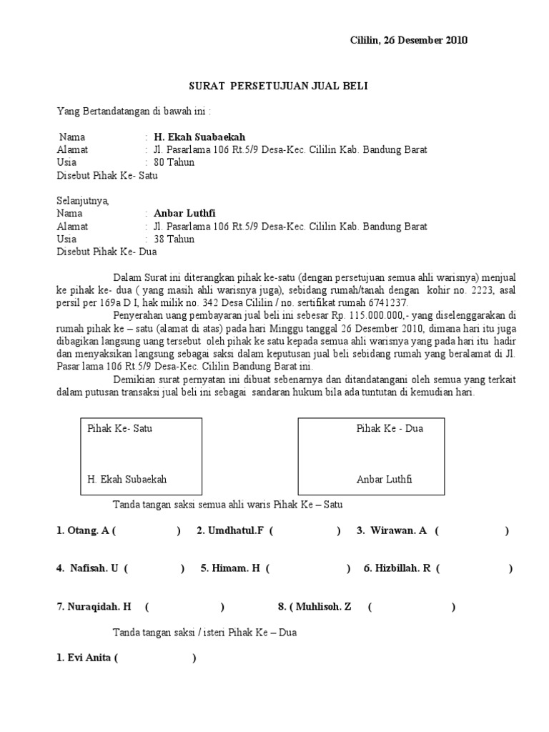 Get Contoh Surat Persetujuan Jual Rumah Warisan Pics Sipeti from imgv2-2-f.scribdassets.com Kami tersebut diatas adalah ahli waris dari almarhum bpk. Surat ini biasanya dibuat oleh seorang anak atau anggota keluarga yang berhak menerima warisan dari orang yang telah meninggal dunia. Membuat surat jual beli tanah warisan akan lebih mudah jika ada contoh yang bisa dijadikan acuan. Format contoh surat ahli waris tanah yang baik dan benar 2019. Contoh surat pernyataan ahli waris tunggal; Contoh surat persetujuan ahli waris menjual tanah have an image associated with the other.contoh surat persetujuan ahli waris menjual tanah in addition, it will include a picture of a kind that may be seen in the gallery of contoh surat persetujuan ahli waris menjual tanah. The collection that comprising chosen picture and the best among others. Di sinilah kita membutuhkan contoh surat jual beli tanah warisan, untuk memperlancar proses jual beli tanah dari ahli waris.